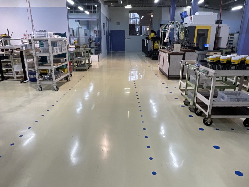 一般的な一直線のラインテープは、重歩行や台車で一部が傷付くと「つぎはぎ」での補修になりがちですが、丸型シールなら傷んだ1枚だけを剥がして簡単に貼り替えることが可能です。
